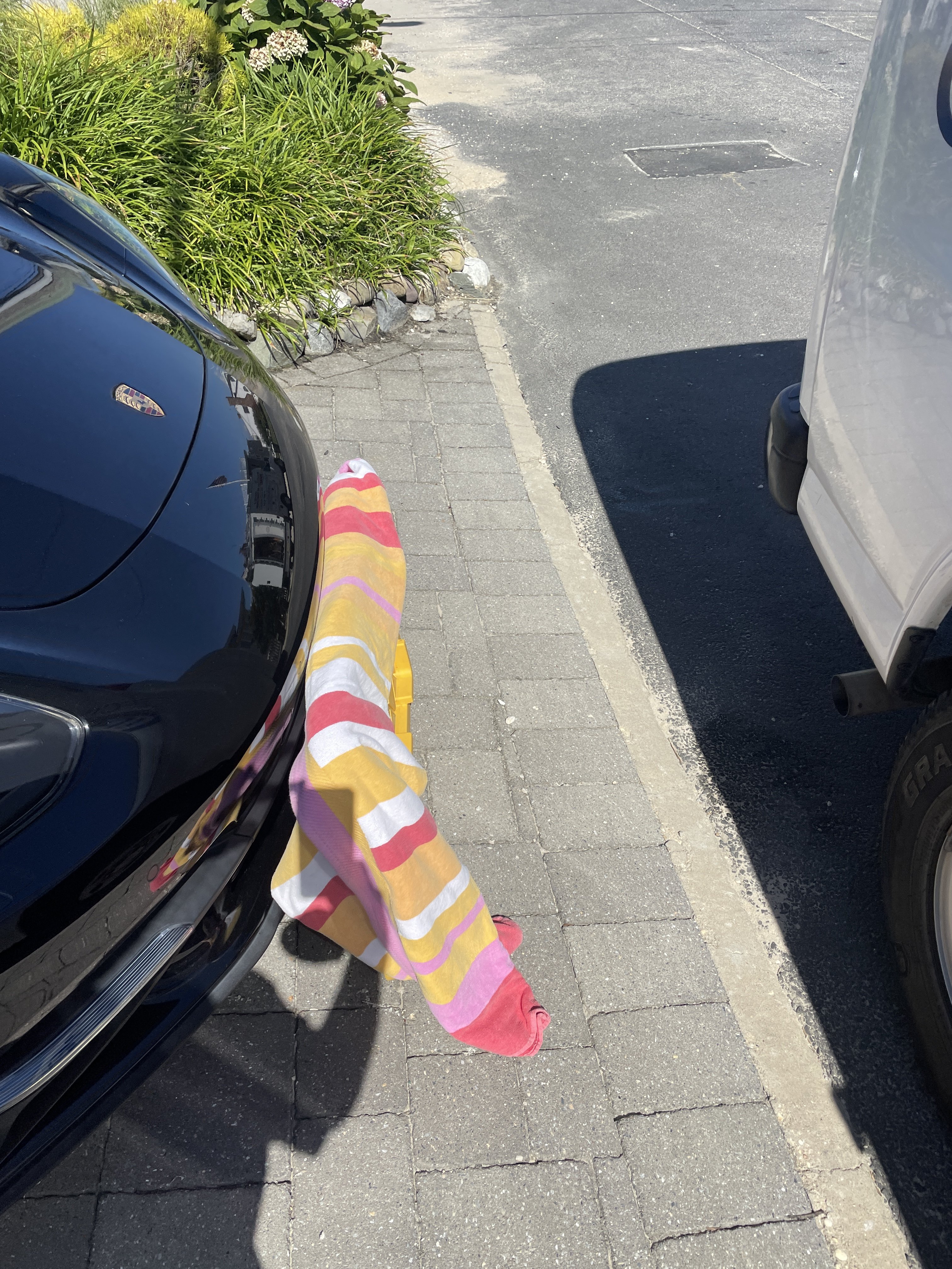 When people see we go the extra mile to take care and respect their nice homes and belongings, they always appreciate it. No other place to park, I felt my exhaust was a little close to the car. put up a plastic shelf with a towel so I didn't cause any problems.