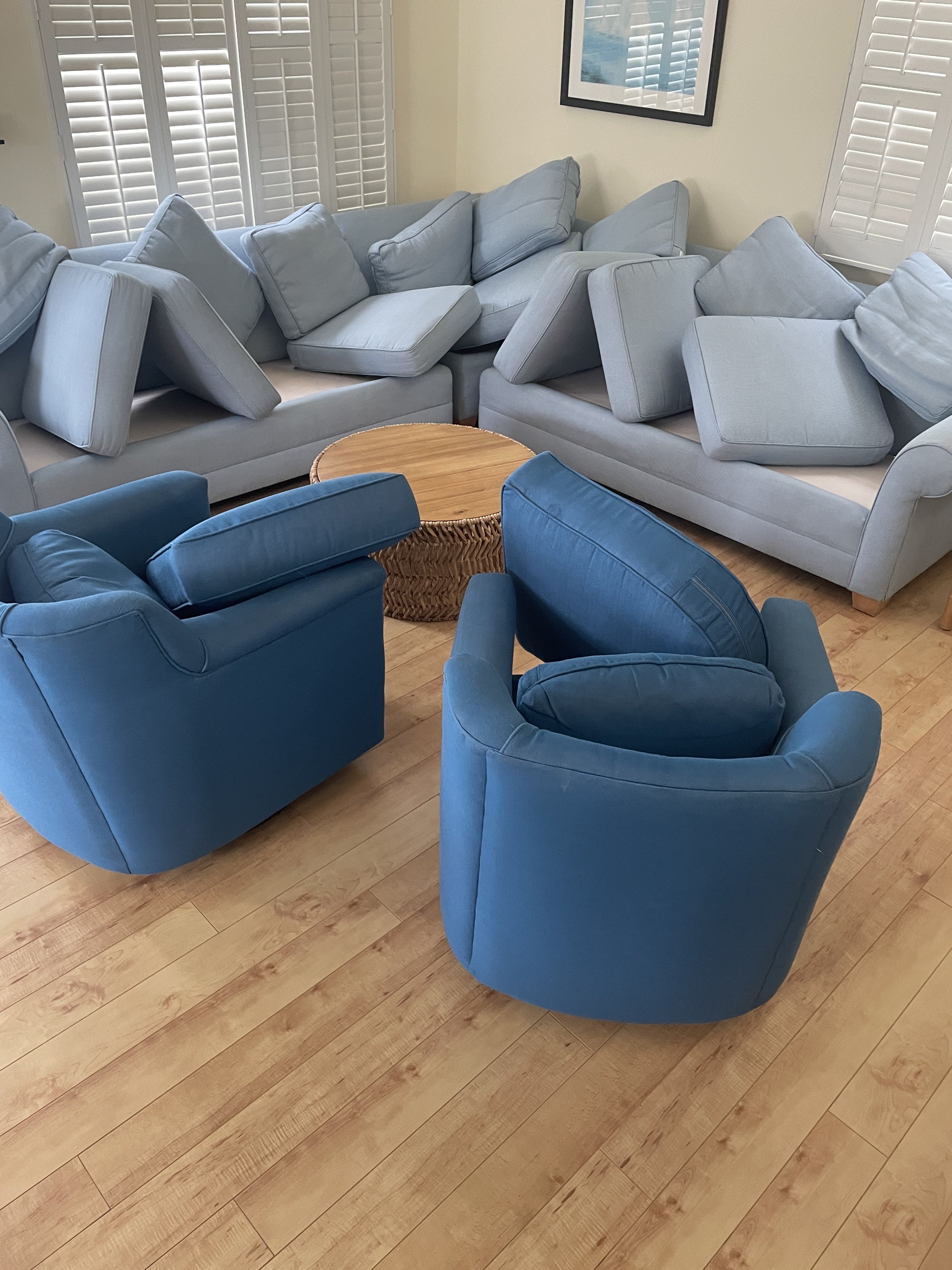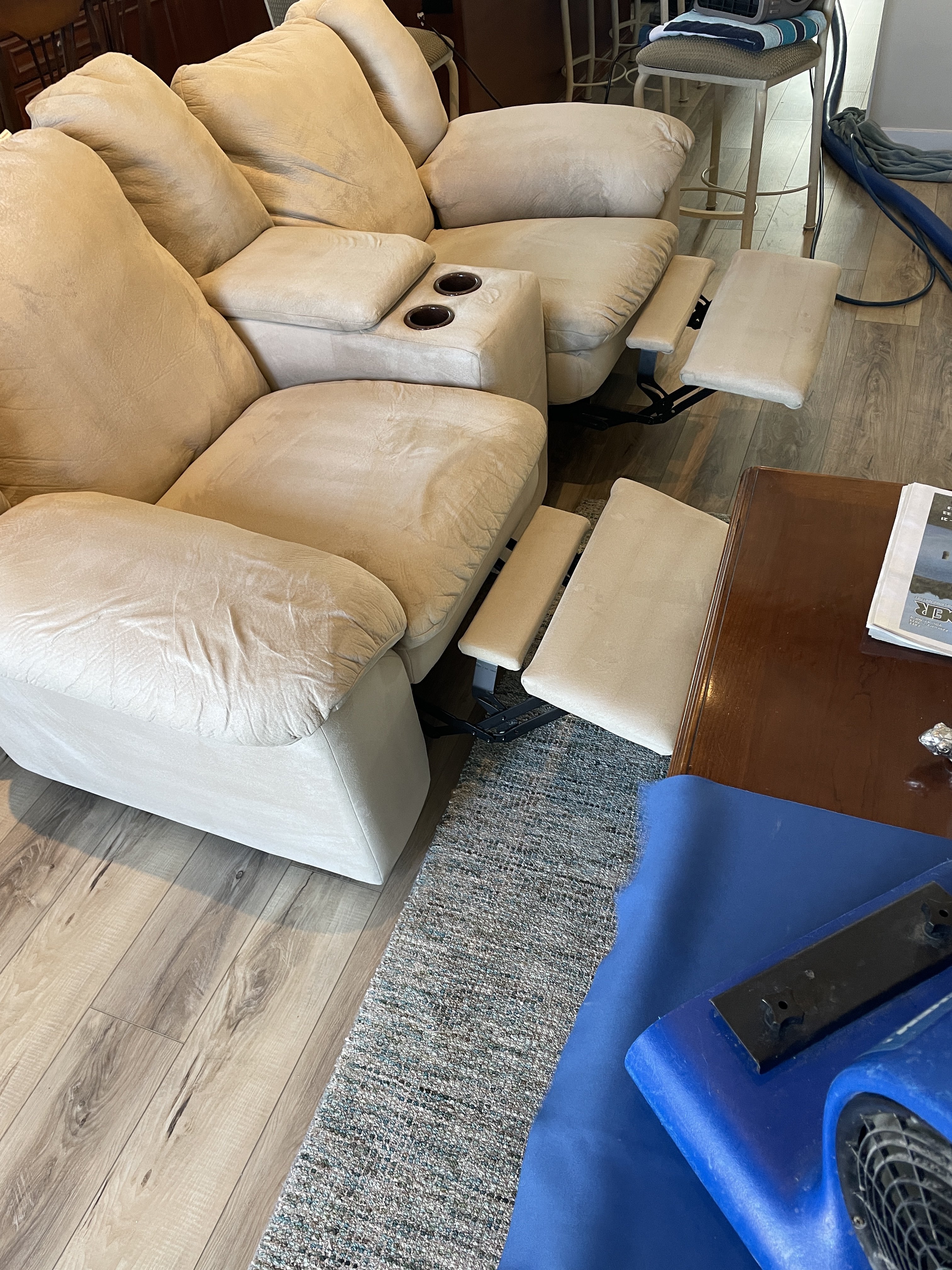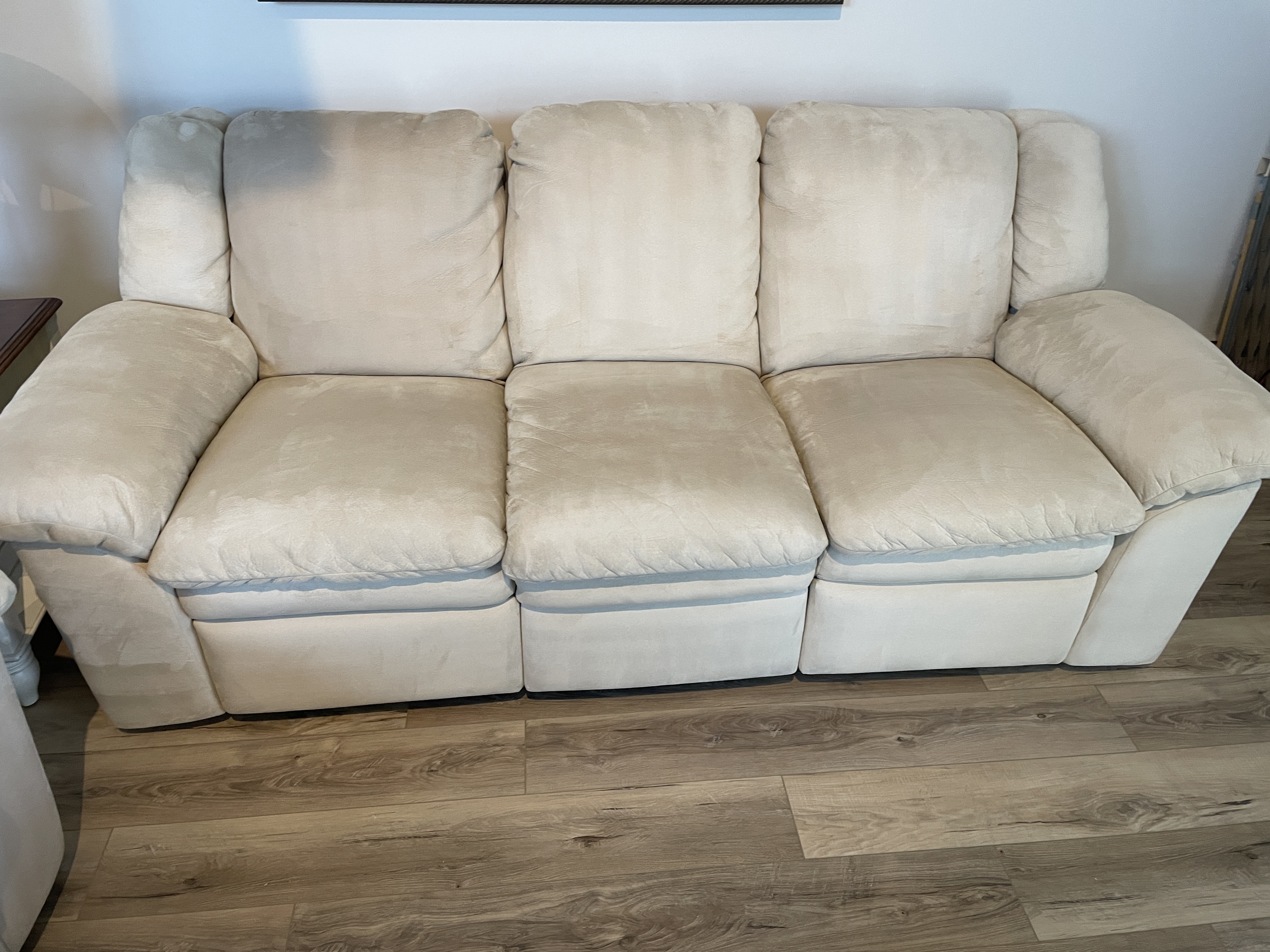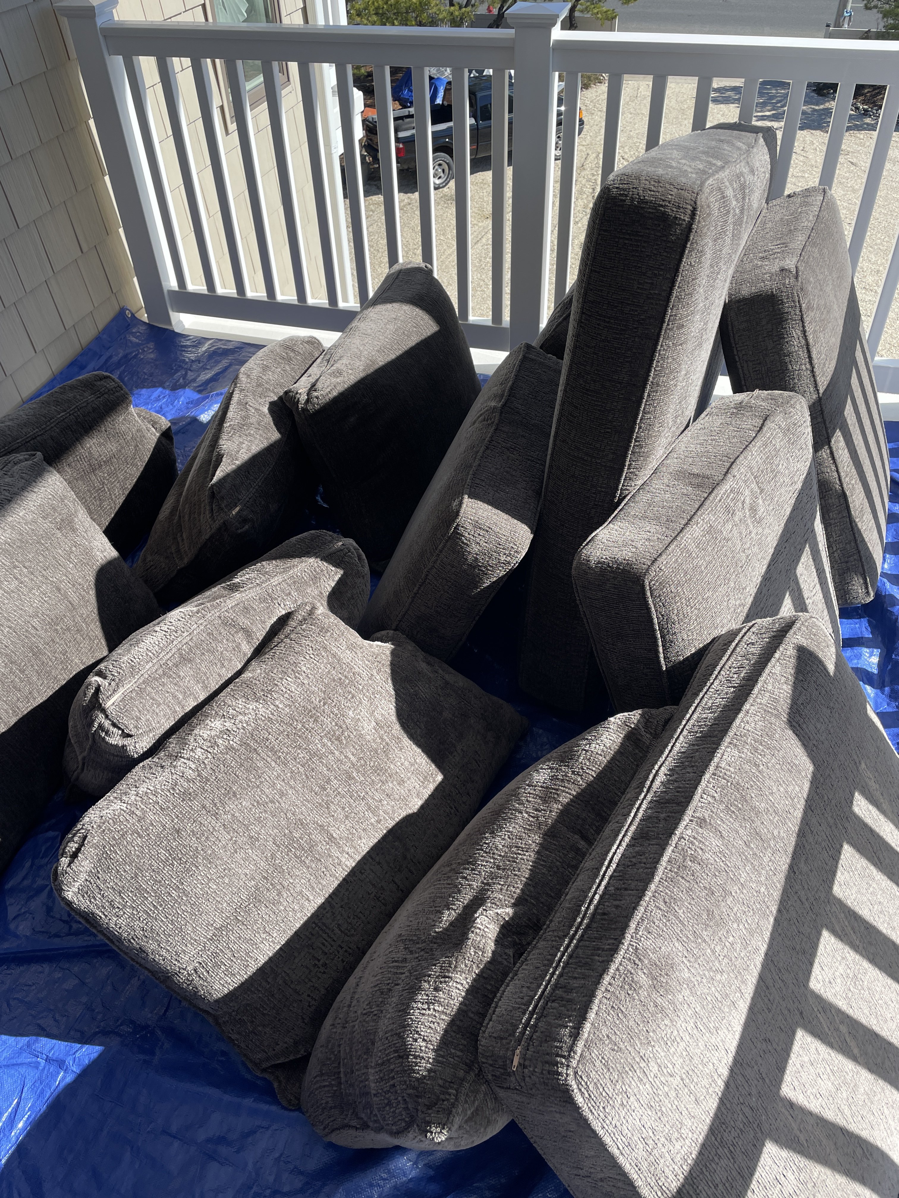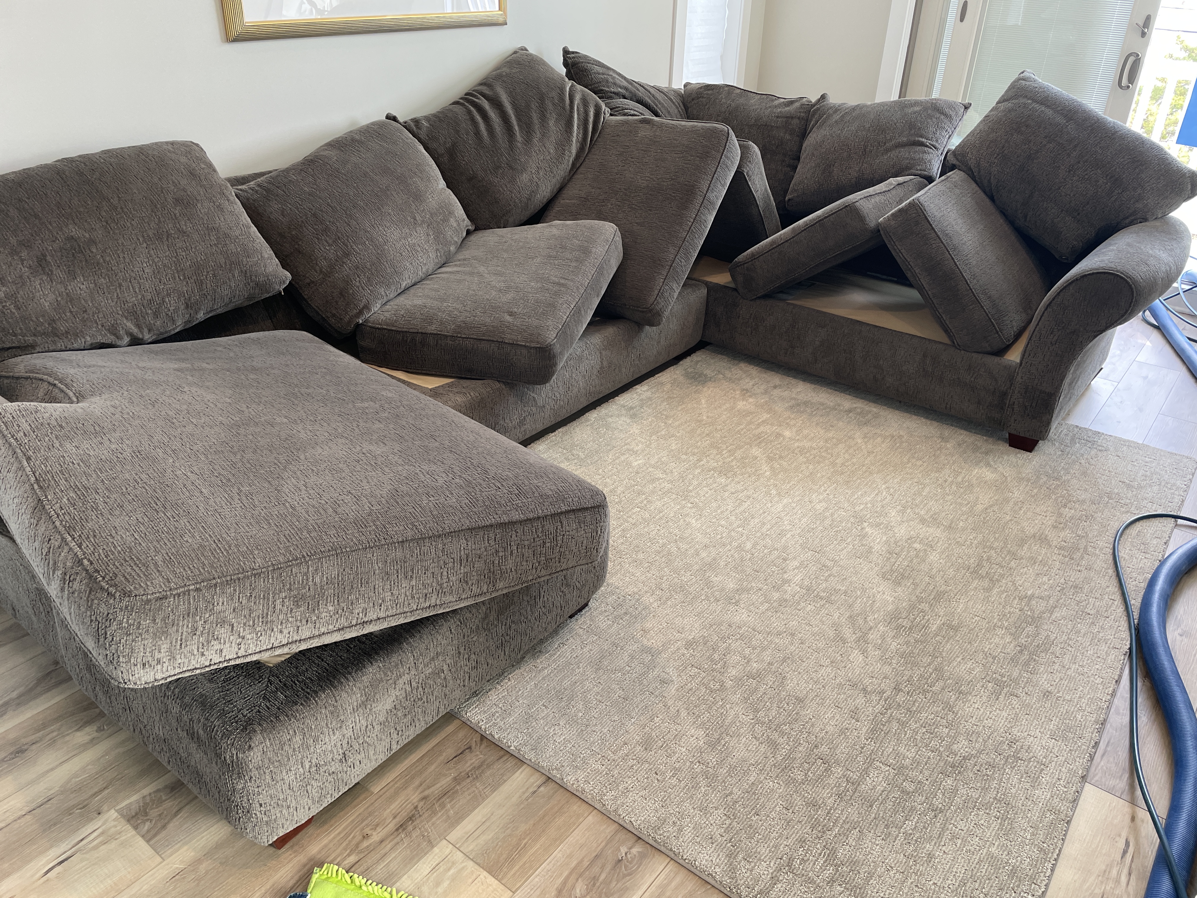 Another typical day today. One of the most difficult loveseats, even though its microfiber. All them little corners. Couch was ez. Sectional even ez er. When I groomed them at the end, they did look real good. In the pics, so so.
