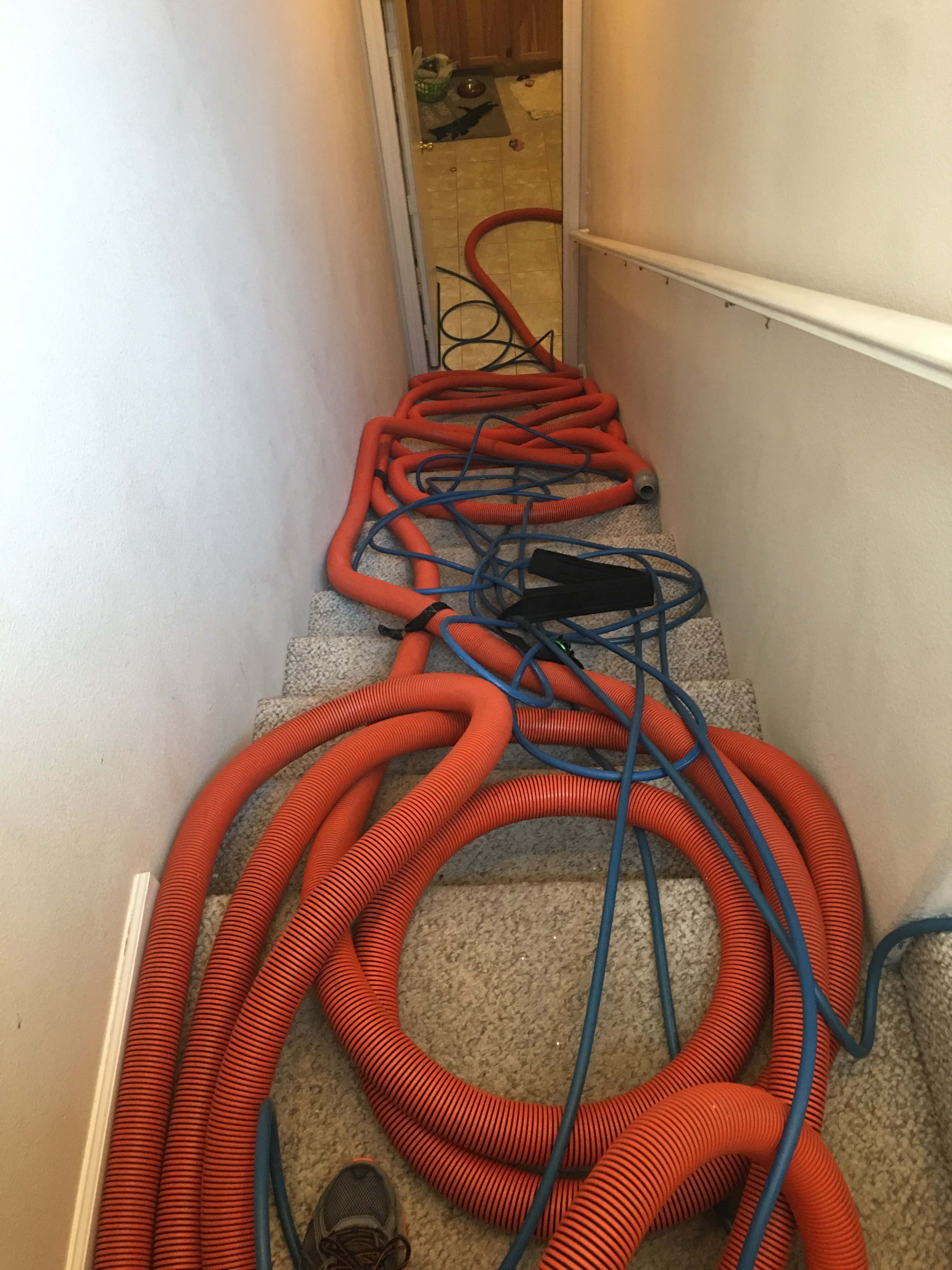 Had to clean a three story house yesterday. 43 stairs and snow white urine soaked carpet. It was a real pain in the rear, and back. But I pulled through.
