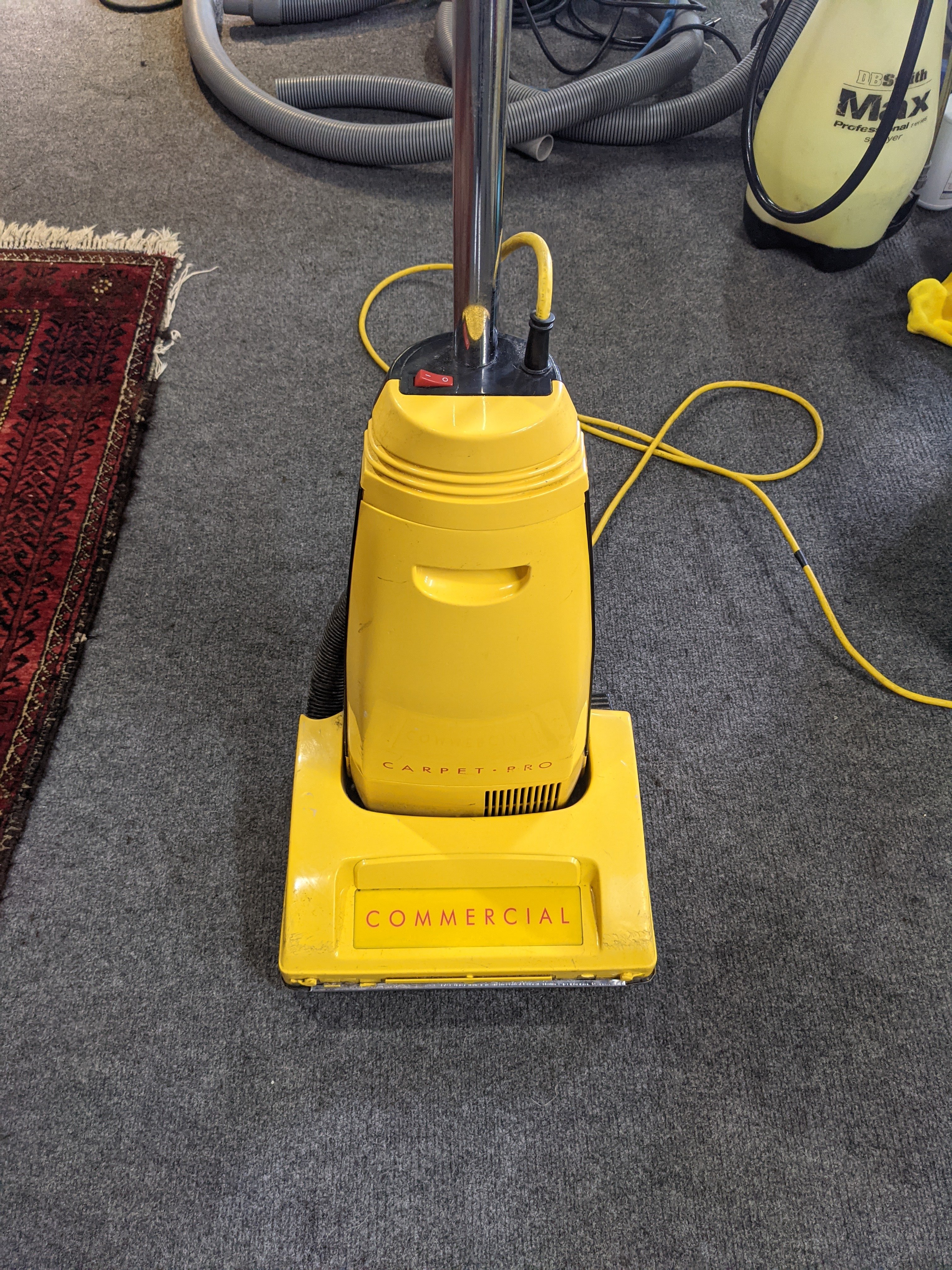 Looks pretty good but impossible to use in a staircaseDo you want to look like the homeowner? Using a common houshold vacuum doesn't distinguish you as a professional. If there's any way that you can see your way clear to purchase a "Commercial" vac, they'll normally perform better for you, last longer, and give you a more professional appearance to boot. The modestly priced Lindhaus Activa 30 Pro is becoming popular with professional carpet cleaners. It's CRI approved too.