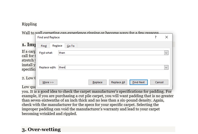If your carpet has experienced rippling or has gotten wavy after it’s been cleaned, DO NOT TAKE ANY MEASURES TO CORRECT the issue for 48 hours. Improperly installed (loose) carpet will settle down and lay flat again 99% of the time.