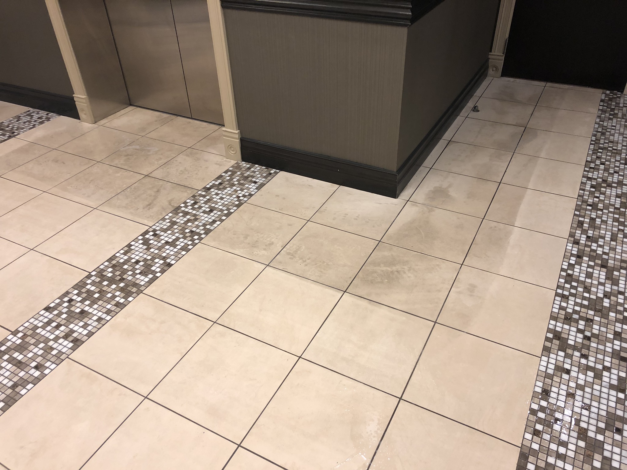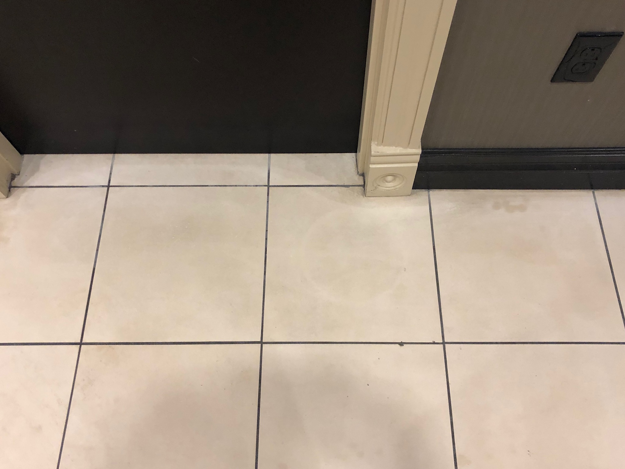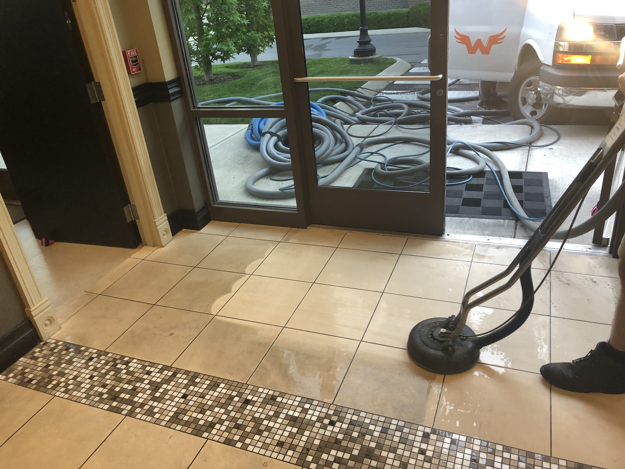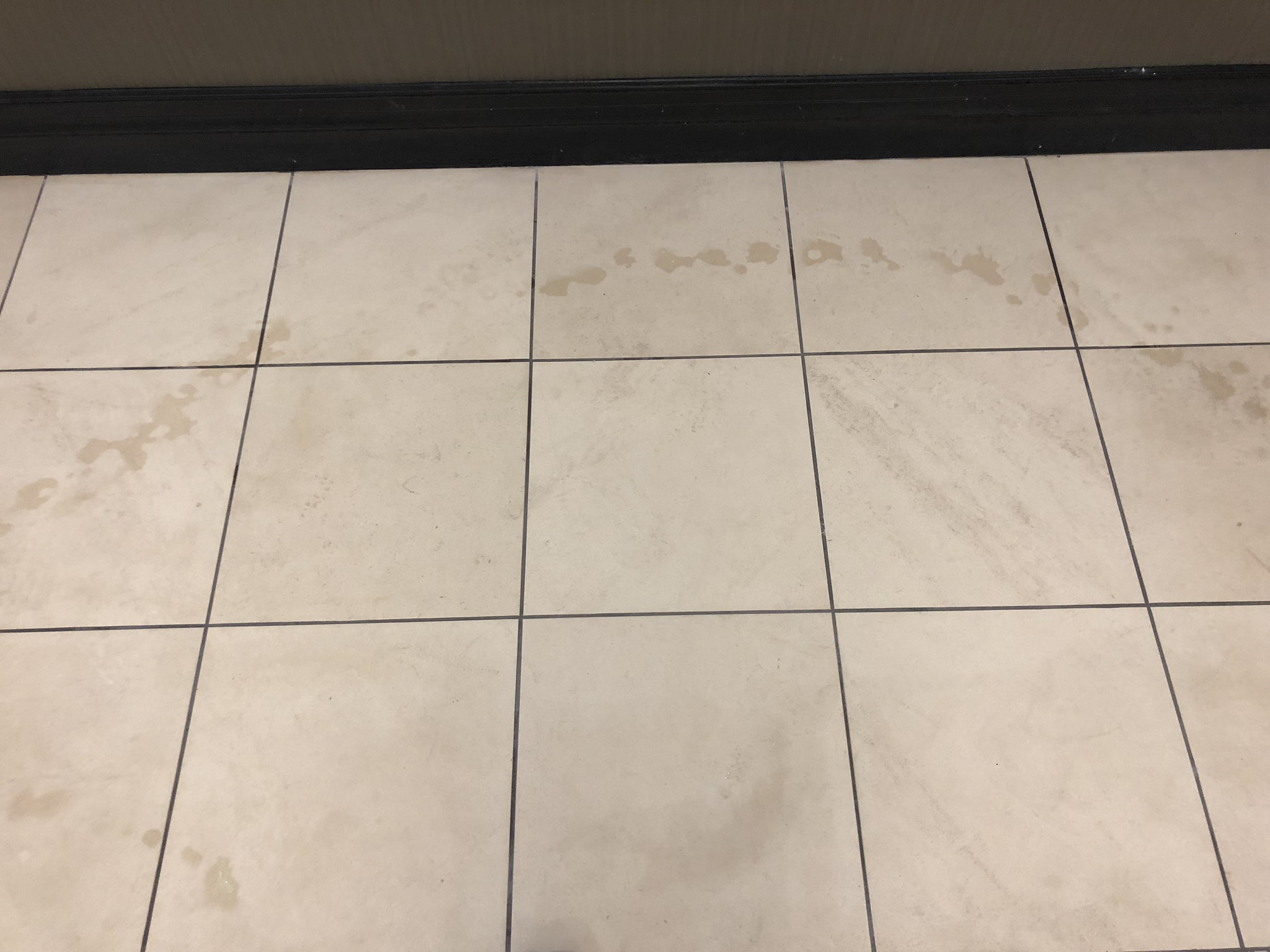 The tile looks ceramic, but it fizzed with the acid test. The architect said it was limestone travertine. I've never seen travertine without the tiny holes. My guess is that it is limestone that they call travertine to help sell. If it is a natural stone, will scrubbing it with a cimex and gray pads harm it? You can see how neglected it was. I am sure any sealer had warn off and it had not been cleaned in years if ever with anything other than a mop.