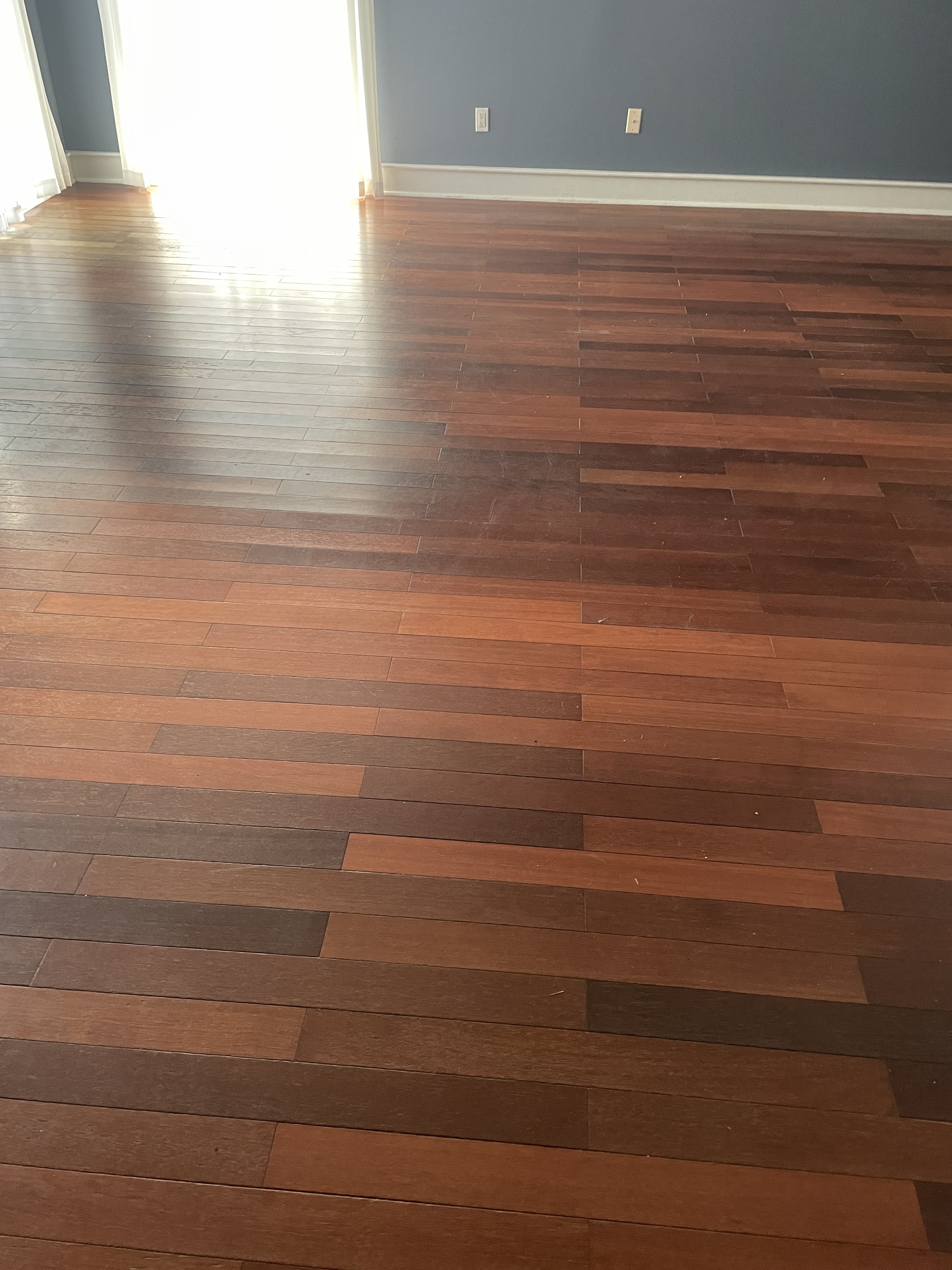 The thing about hardwood floors is, the stupid homeowner forgets all the shit they've put on it over the years. They don't know the difference between Bona floor finish (acrylic mopNglow), and normal hardwood floor cleaner, because it's in the same type of bottle.