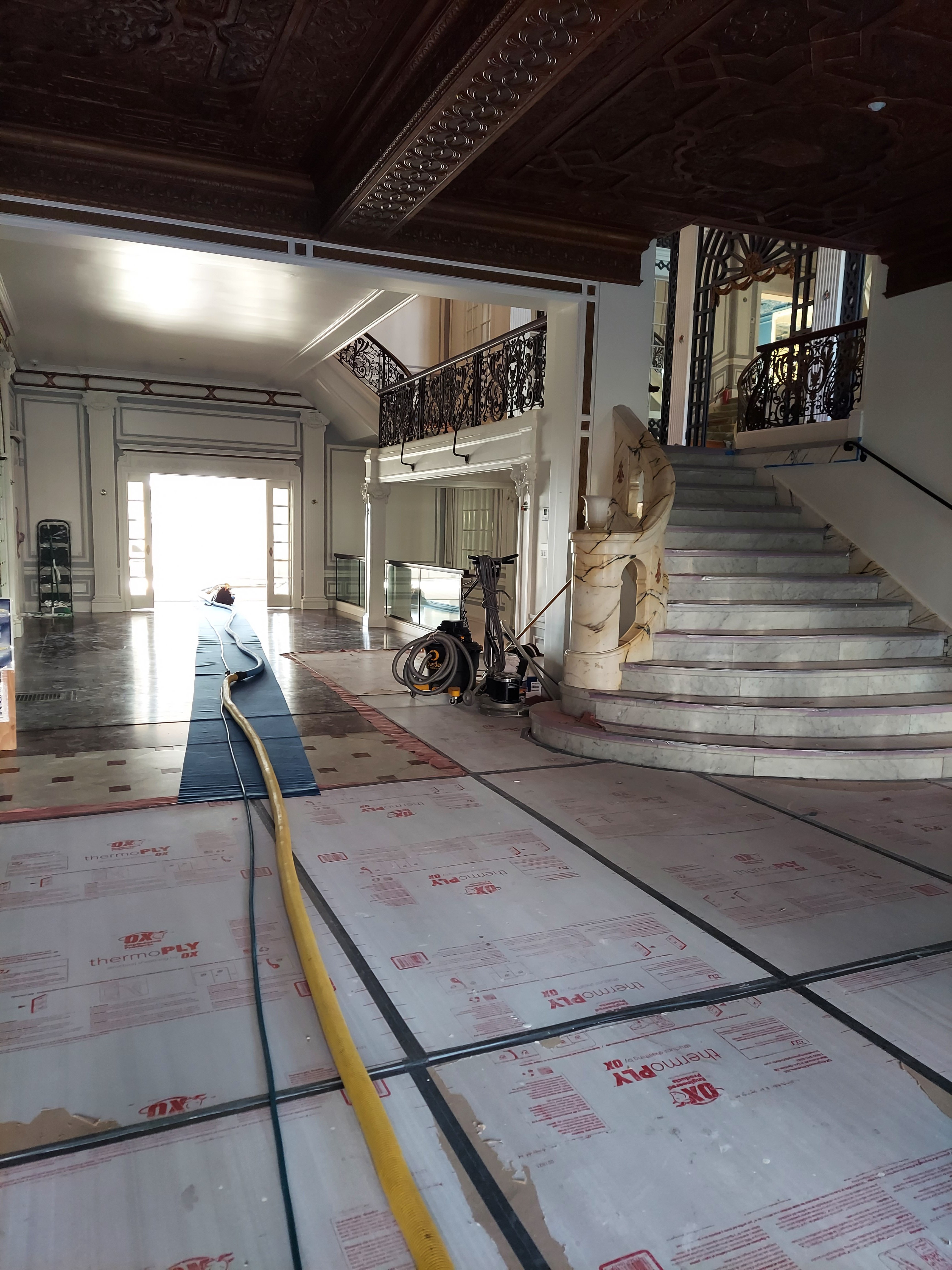 no need to protect the protective fiberboard protecting the floor underneath.